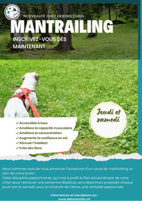 Les cours de mantrailing sont accessibles à tous les chiens, quel que soit leur âge ou leur niveau. Aucun prérequis n’est nécessaire, mais les chiens doivent être en bonne santé. Cette activité est idéale pour stimuler l’esprit des chiens très actifs et ceux qui aiment travailler avec leur nez. Cette discipline peut tout à fait convenir à des chiens réactifs étant donnés qu'ils travaillent seul.